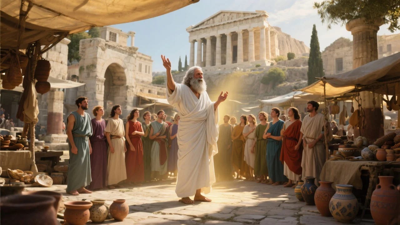Even with a basic knowledge of Socrates, we are not surprised to see him preaching to the ancient Greeks about the importance of being good,