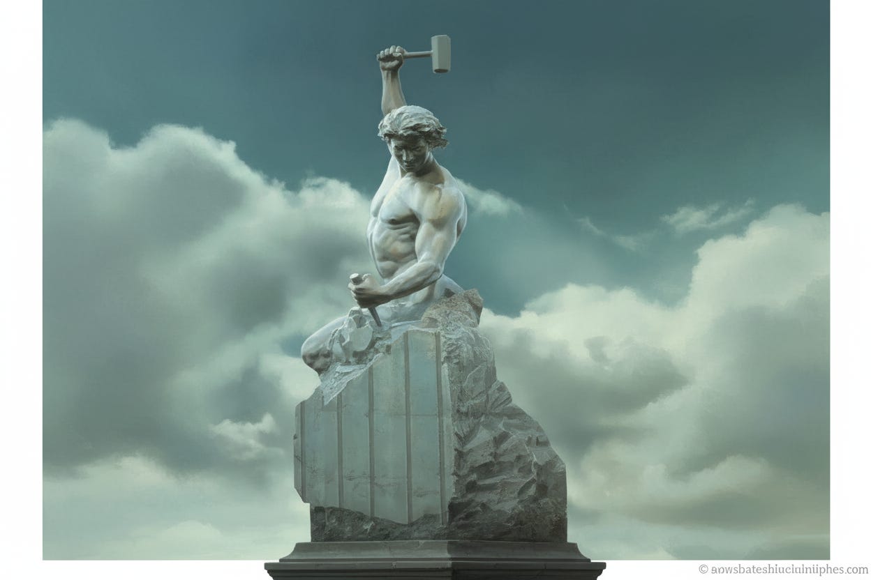 Gradual transformation: The sculpting process implies gradual change over time. We need to understand that our personal growth often occurs incrementally rather than through sudden, drastic changes.