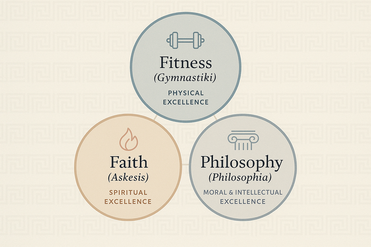 Fitness - Gymnatiski. You practice physical excellence through a daily workout that includes strength training, stamina building, stretching and sports. But also it’s a way of life because you enhance your physical life through diet, supplements and regular labs to test your health and nutrient levels. In fact diet, another Greek word (diaita) in the original meaning represented a whole way of life. It was a healthy lifestyle that was both mental and physical rather than a narrow weight-loss regimen.
