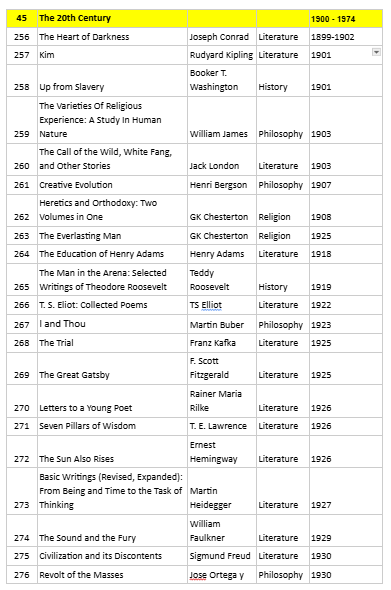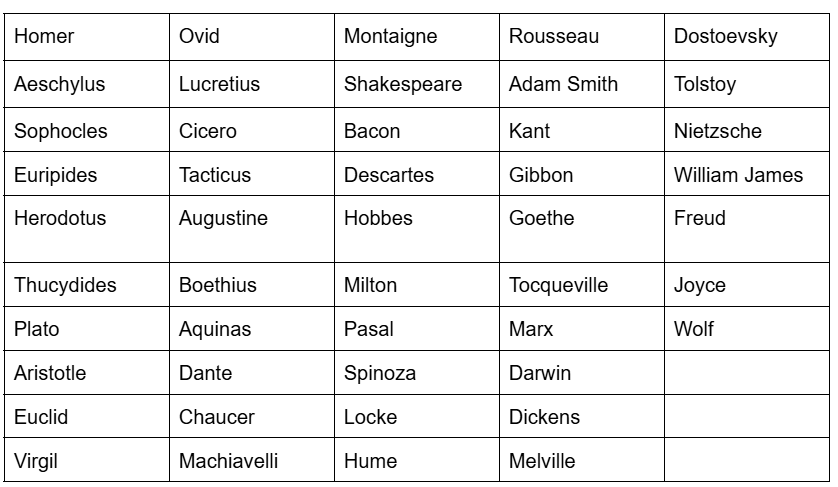 I found it especially helpful to focus on two credible sources: 1/ scholars who have written on the importance of the Western Canon and created their own lists and 2/ universities who specialize in teaching a Great Books program.