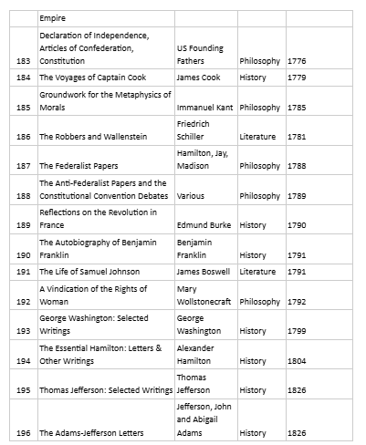 At risk of upsetting literary scholars, I’ve included a number of writing collections that don’t typically qualify as Great Books. We have the writings and letters of a number of famous American and British statesmen. I’ve included these eight collections as separate history books to help benefit from the direct words of these Great Men: