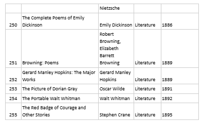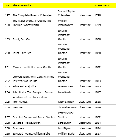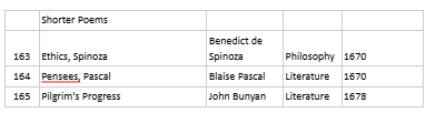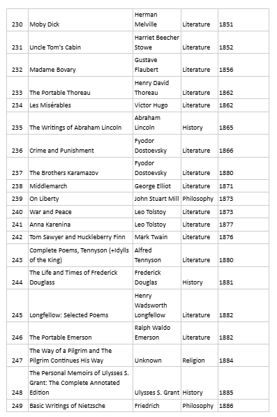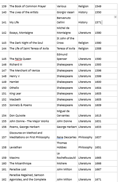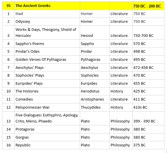 Where possible I tried to select individual, separate books. Instead of Homer, I have the Iliad and Odyssey as two separate entries.