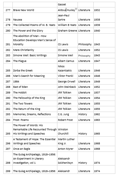 Without further ado, here’s the complete list: A lifelong reading list of the best 300 books of the Western Tradition.