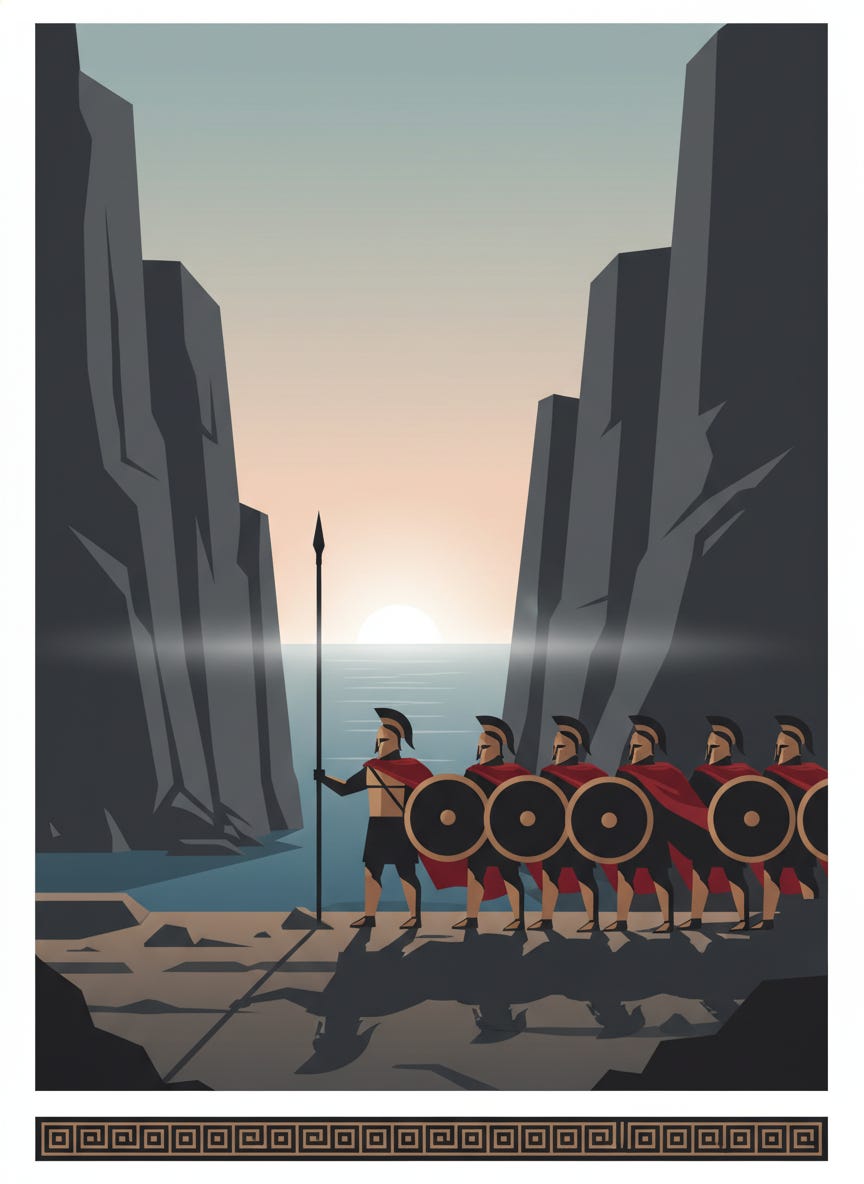 The 300 Spartans at Thermopylae (480 BC): a small, chosen band holding a pass against overwhelming force—discipline, civic virtue, duty unto death, the defense of free polities against an empire.