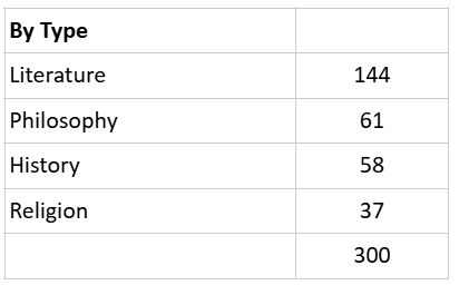 First, I began with the end in mind. I used 300 as the target number of total books.