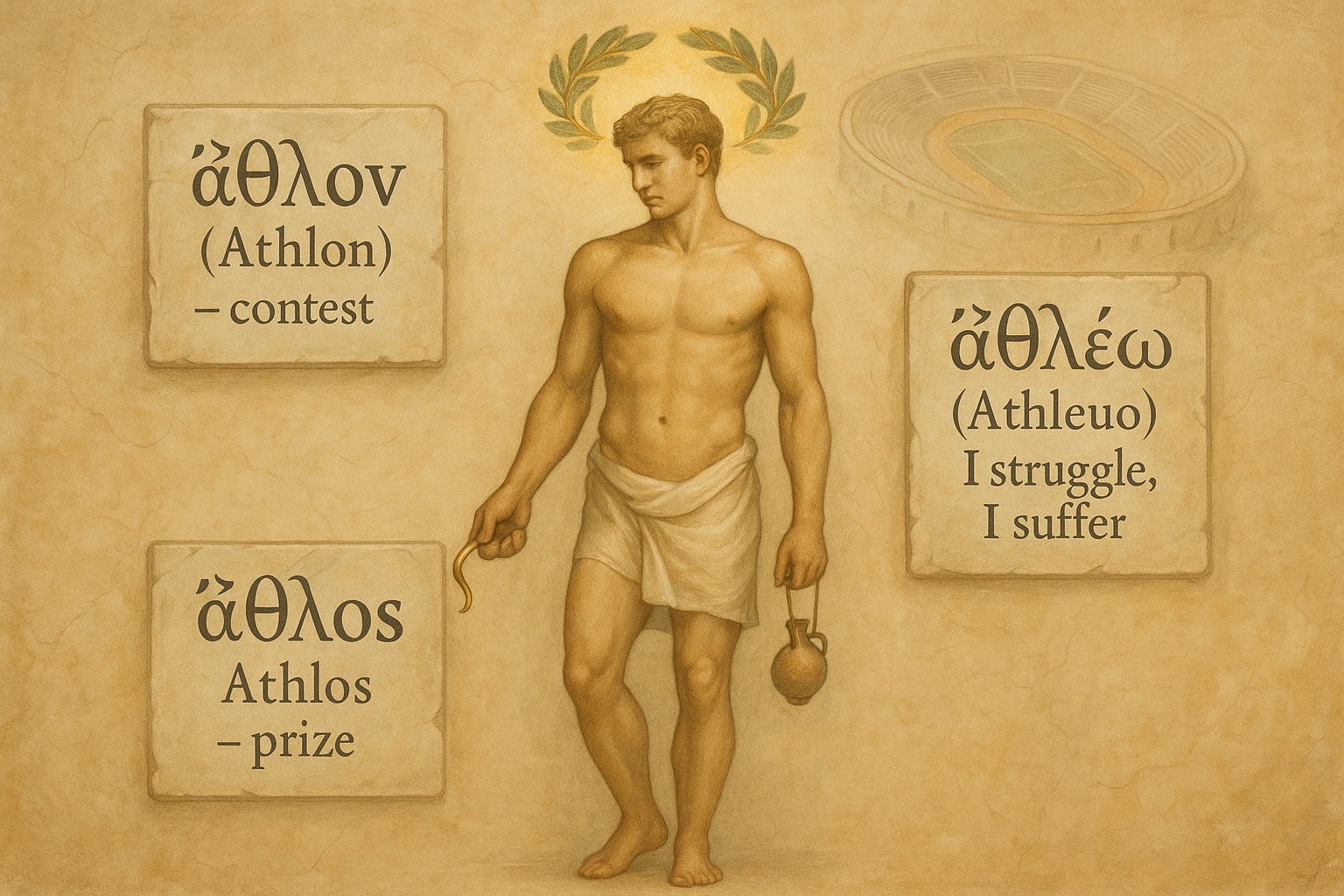 Athleuo: this meant not only “I take part in a contest” but also “I suffer,” “I struggle”